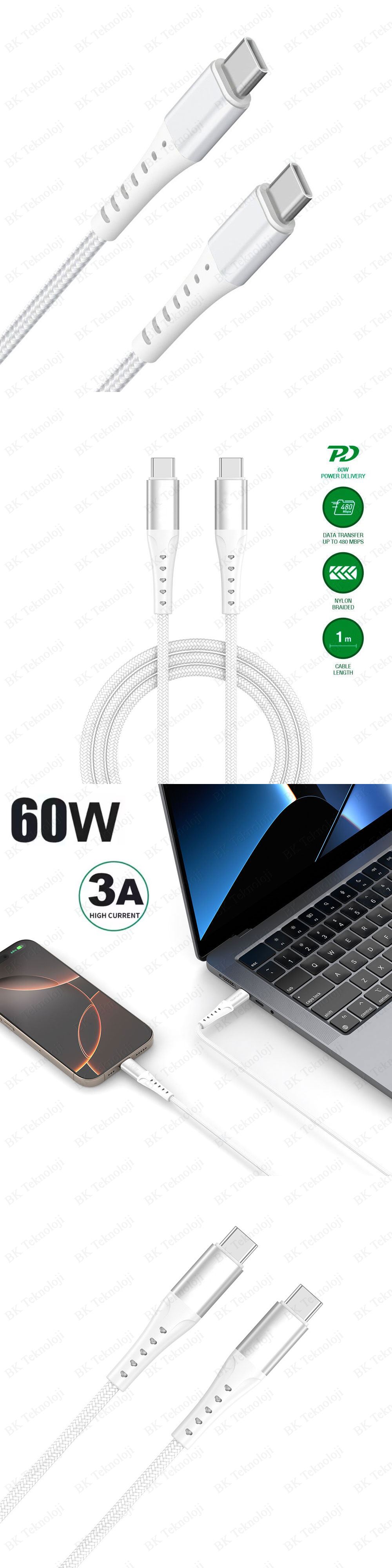 3A / 60W Type-C to Type-C Örgülü Hızlı Şarj ve Data Kablosu (1 Metre)