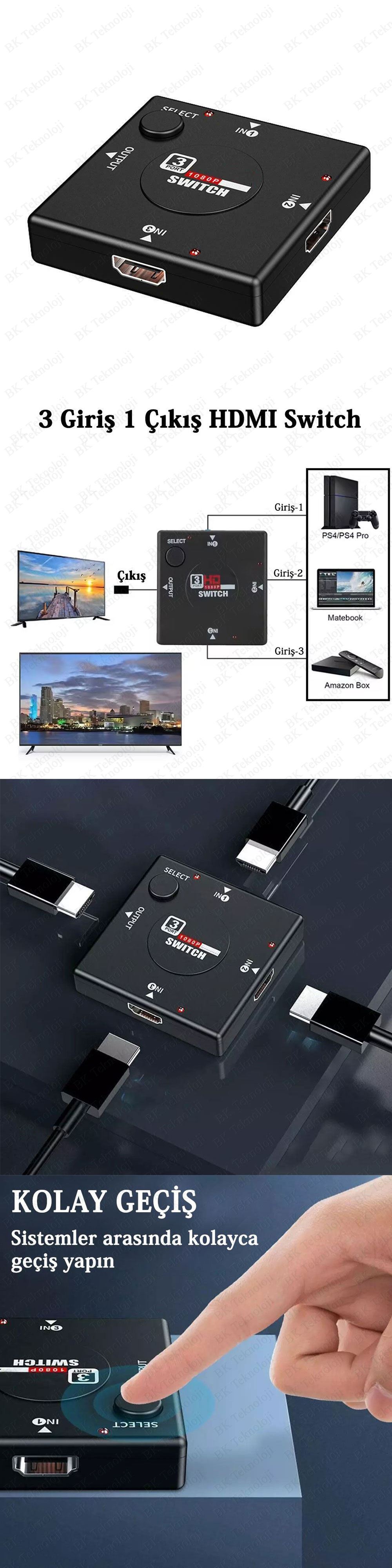 3 HDMI Dişi Giriş & 1 HDMI Dişi Çıkış.