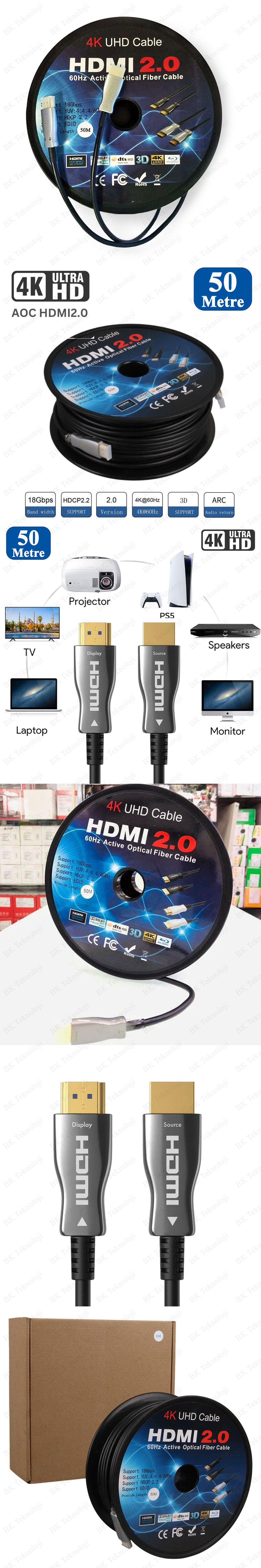 1 Adet 4K UHD Premium Yüksek Kalite HDMI 2.0 AOC Fiber Optic Kablo 50 Metre