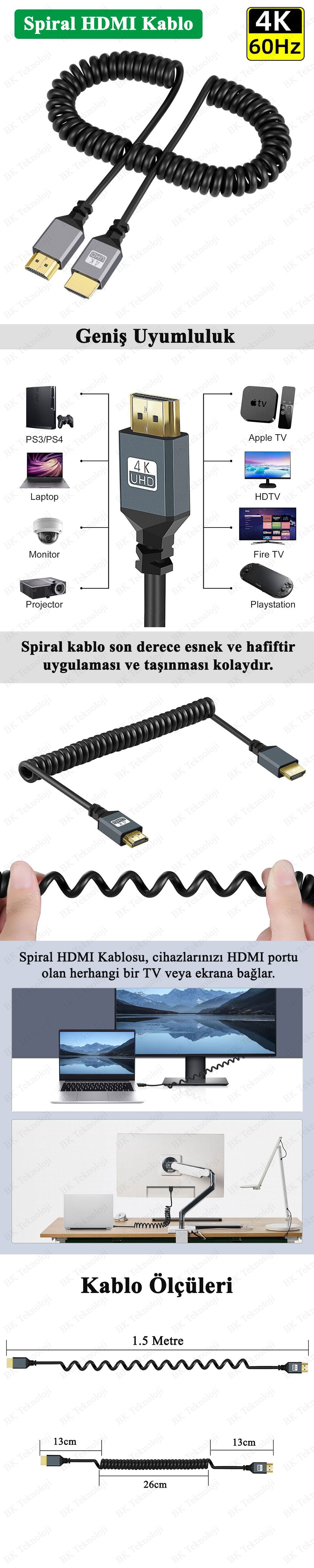 1 Adet Spiral Tasarım Ultra HD 4K 60hz HDMI Kablo - 1.5 Metre
